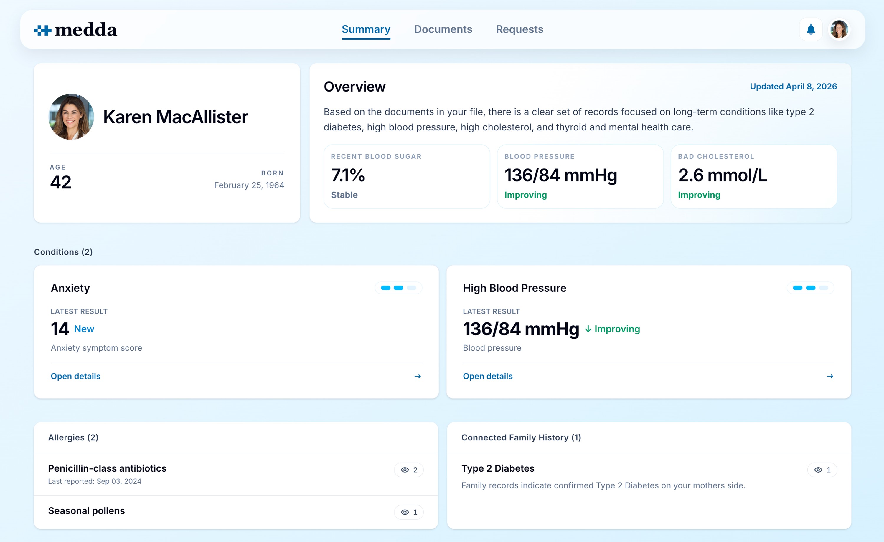 Medda helps patients retrieve, store, interact with, and share health information so care starts with context, not catch-up.