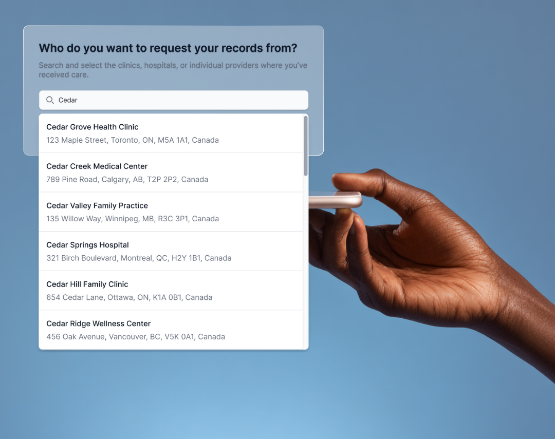 Medda is a secure home for your health history. With your consent, we request records from providers across Canada and keep them together in your account, organized and easy to understand.